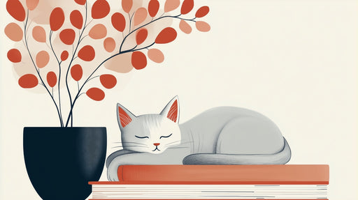 Art'loloThis Mural Wallpaper cat and plants features a peacefully sleeping gray cat on a book, with a vase of red leaves by its side. Its sleek design and ...