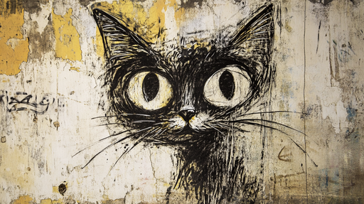 Art'loloThis artistic cat mural wallpaper captures the essence of street art with its bold and expressive design. The intriguing face of the cat, in black ...