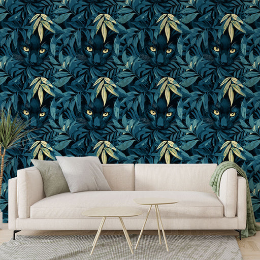 WonderMuralThis innovative mural wallpaper features a captivating design of black cats hidden among luxurious tropical leaves. The shades of green and blue, m...