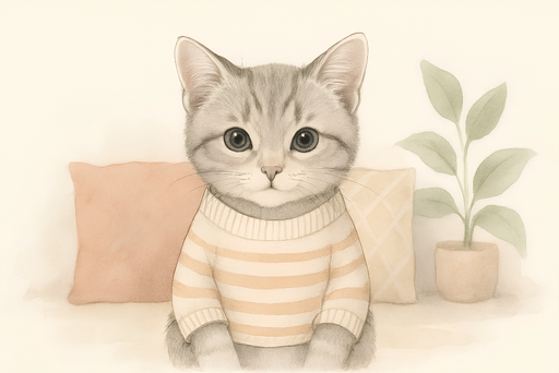 View full detailsMural Wallpaper cute cat | An adorable kitten wearing a striped sweater on a soft background