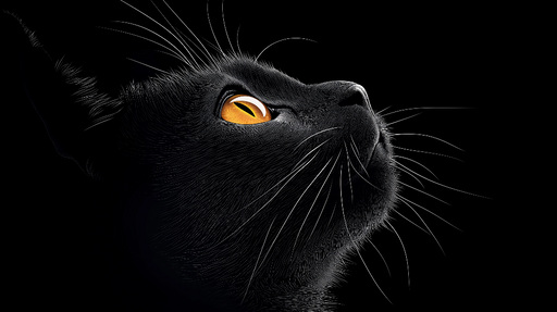 WonderMuralThis captivating mural wallpaper features an artistic portrait of a black cat with piercing orange eyes, set against a deep black background that h...