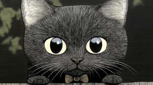 WonderMuralThis captivating mural wallpaper illustrates an adorable black cat with large round eyes, perfectly detailed. Its little bow tie adds a touch of el...