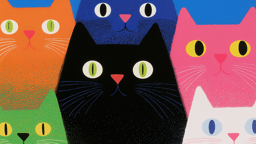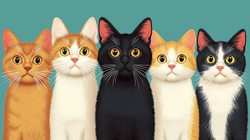 View full detailsMural Wallpaper cats | Colorful illustration of five adorable cats with captivating expressions