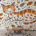 The bright colors and fun patterns add a warm and welcoming atmosphere, capturing the imagination of both young and old. This colorful cat wallpaper is perfect for those looking to infuse a joyful and vibrant atmosphere into their interior.