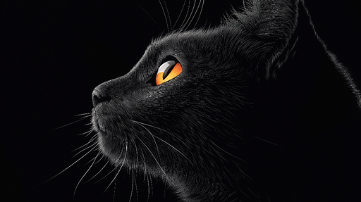 WonderMuralThis mural wallpaper features an artistic profile of a black cat on a black background, captivating with its elegance and depth. The bright orange ...