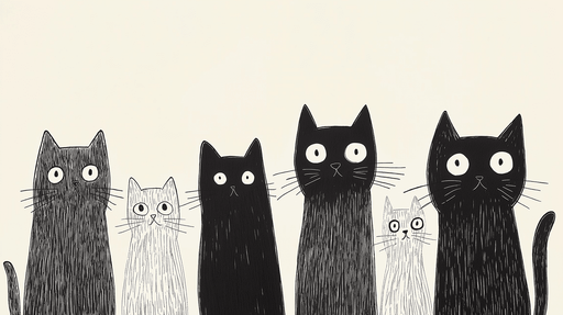 Aura ArtworksThis wallpaper features minimalist and adorable drawings of black kittens. With their big round eyes and various poses, these kittens bring a touch...