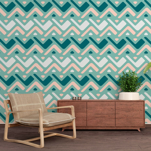 Mural Wallpaper geometric | Aquatic chevron pattern