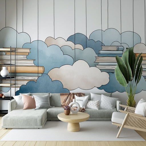 View full detailsMural Wallpaper books and clouds | Soothing design with floating books among soft clouds