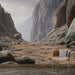 This mural wallpaper illustrates a arid landscape where a vast desert valley is framed by majestic rocky walls. The shades of earth and stone are highlighted, making this space as striking as it is natural. The color palette, ranging from earthy browns to subtle grays, brings a sense of tranquility and wilderness.