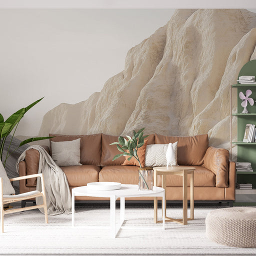 The colors to pair with this mural wallpaper include neutral tones such as white, beige, and taupe, which will balance the depth of the image while maintaining a harmonious ambiance.
