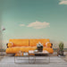 Discover our mural wallpaper inspired by a minimalist landscape, where a solitary road stretches across a vast desert under a bright turquoise sky. The soft clouds add a touch of lightness to this soothing scene, perfect for bringing a serene ambiance to your interior.