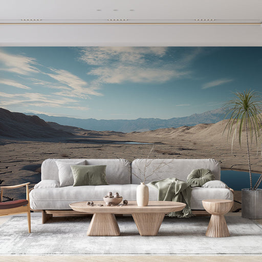 WonderMuralThis mural wallpaper evokes a captivating arid landscape, featuring a desert terrain with a dried-up lake in the foreground. The warm colors and na...