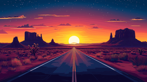 View full detailsMural Wallpaper desert landscape | Road leading to a vibrant sunset