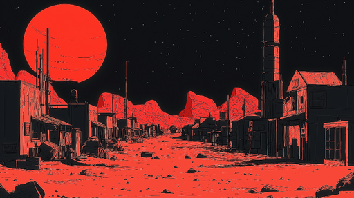 View full detailsMural Wallpaper universe | Desert city under a red moon