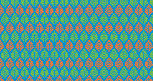 Studio SamaThis mural wallpaper feather pattern features a vibrant design with green and orange feather patterns on a bright blue background. Perfect for addi...
