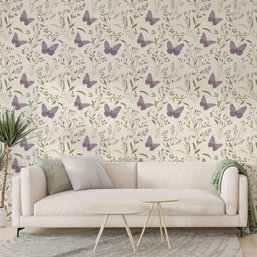This charming mural wallpaper features a subtle pattern of little birds and gray feathers set against a cream background. The lightness of the desi...