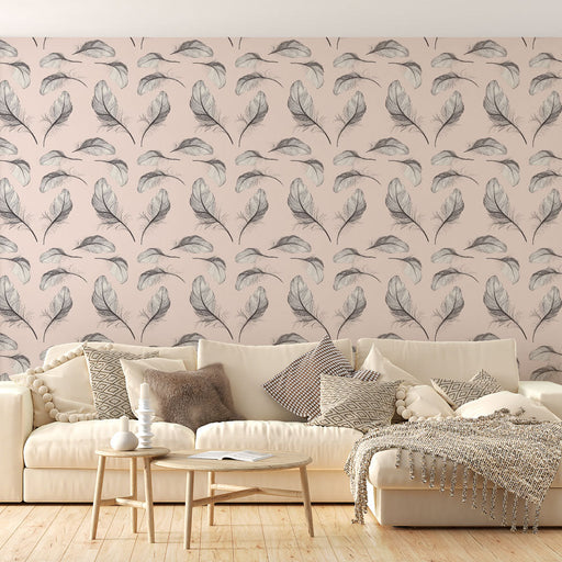 Mural Wallpaper floral patterns | Pink and beige feather patterns