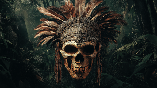 WonderMuralImmerse yourself in a mysterious world with this mural wallpaper featuring a skull adorned with a feather headdress, detailed with exquisite precis...