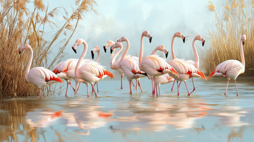 Art'loloAdmire the grace of flamingos with this magnificent mural wallpaper, ideal for creating a serene atmosphere in your space. The soft tones and reali...