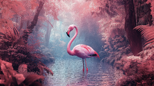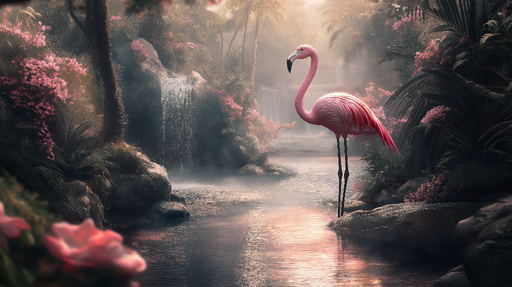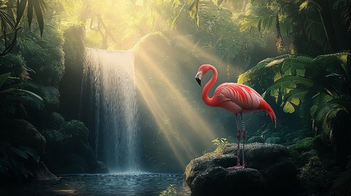 View full detailsWallpaper flamingo | Tropical escape by a peaceful waterfall
