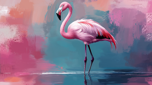 WonderMuralOur wallpaper depicts a stylized pink flamingo, proudly standing on a vibrant and colorful background mixing shades of pink, blue, and purple. The ...