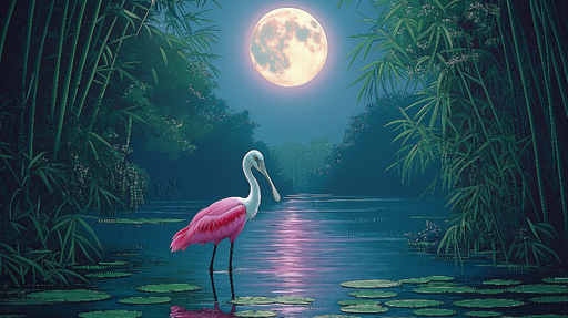 View full detailsMural Wallpaper flamingo | Night landscape with flamingo by the water under the full moon