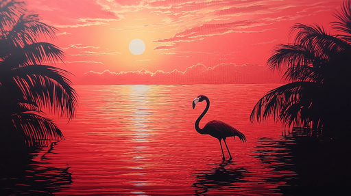 View full detailsMural Wallpaper flamingo | A vibrant tropical scene with a flamingo at sunset