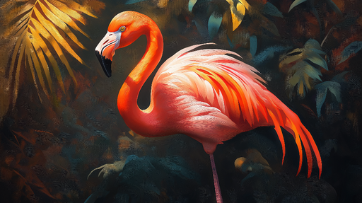 View full detailsMural Wallpaper flamingo | A majestic flamingo standing among lush foliage