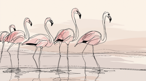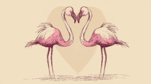 WonderMuralThis mural wallpaper showcases a beautiful sketch of pink flamingos, illustrating two birds tenderly questioning each other, thus forming a symboli...