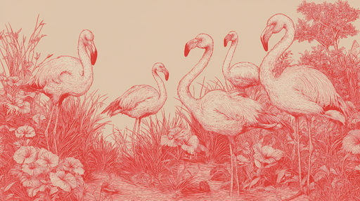 Flamingo mural wallpapers provide an inspiring backdrop to express your creativity. Play with contrasts by incorporating modern or vintage decor elements. Experiment with different textures: velvet, linen, silk, to create captivating visual depth. These patterns invite bold decorative experimentation while maintaining timeless elegance that transcends seasons.