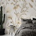 This shabby chic mural wallpaper highlights a timeless floral pattern with hand-drawn flowers and thin stems. The neutral tones, ranging from creams to soft beiges, create a warm and soothing atmosphere, ideal for bringing a touch of nature to your interior.