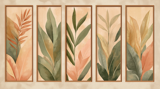 WonderMuralOur mural wallpaper reveals an elegant design composed of stylized leaves within defined frames, creating a warm and soothing atmosphere. The soft ...