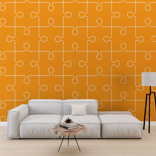 Studio SamaTransform your walls with our mural wallpaper puzzle featuring an intriguing design of puzzle pieces in dark brown and bright orange. Ideal for add...