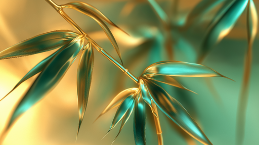 WonderMuralThis mural wallpaper features a magnificent illustration of golden and turquoise bamboos, harmoniously blending warm and cool tones. The play of li...
