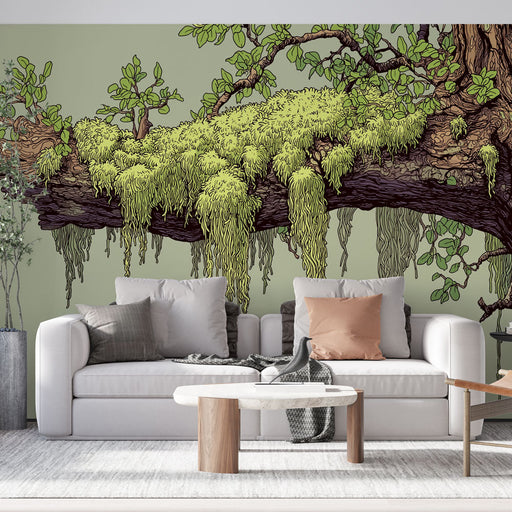 WonderMuralThis exquisite mural wallpaper depicts a beautifully detailed tree branch, adorned with lush lichens and tender green foliage. The natural textures...