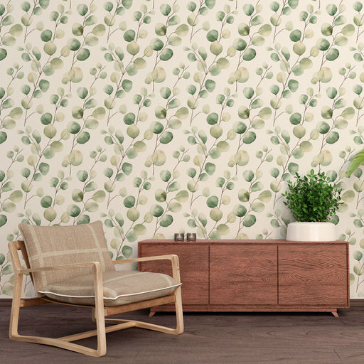 WonderMuralOur wallpaper is distinguished by an elegant pattern of green watercolor leaf branches, perfect for bringing a touch of nature to your interior. Th...