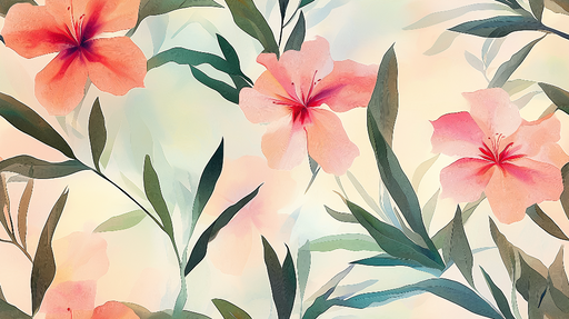 WonderMuralThis illustration of lush jungle harmoniously blends green leaves and coral pink flowers, creating a soothing and natural atmosphere. The soft shap...