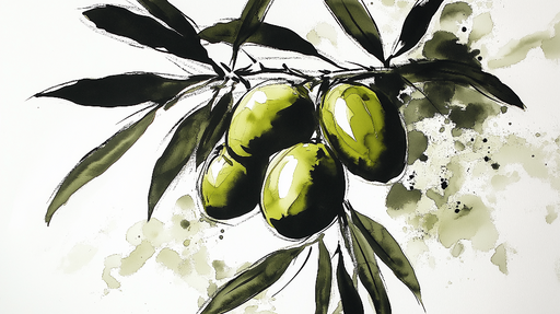 View full detailsMural Wallpaper olive tree | Modern illustration of green olives with foliage