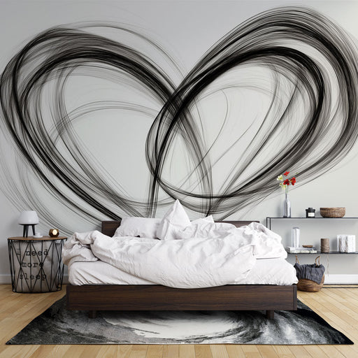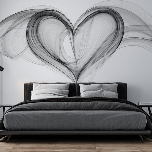 WonderMuralThis minimalist mural wallpaper depicts a heart formed by fluid and abstract lines, creating an effect that is both artistic and soothing. The shad...