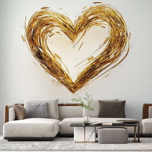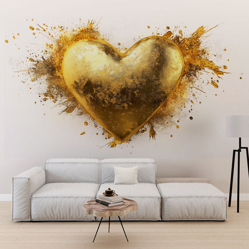 WonderMuralThis mural wallpaper features a shimmering golden heart surrounded by golden sparkles, creating a spectacular and vibrant effect. The white backgro...
