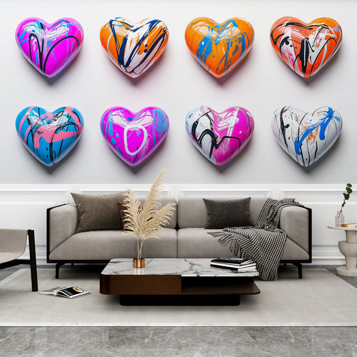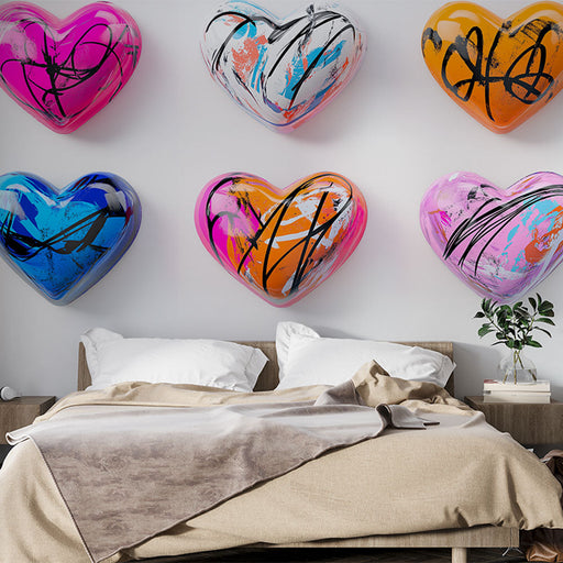 WonderMuralThis set of heart-shaped patterns offers an explosion of bold colors and textures. Each heart features a vibrant mix of hues like bright pink, elec...