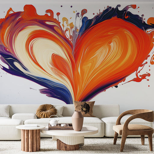 WonderMuralThis striking mural wallpaper features a heart in vibrant shades of red, orange, and purple, which blend harmoniously in an artistic swirl. The bri...