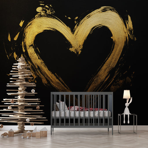 WonderMuralThis mural wallpaper features a golden heart, drawn with an artistic and slightly textured touch on a deep black background. The combination of met...
