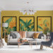 Our tropical mural wallpaper features a vibrant burst of plant patterns, combining lush green foliage and bright yellow flowers on a sunny background. The color palette warms and brightens any room, creating a welcoming and dynamic atmosphere.