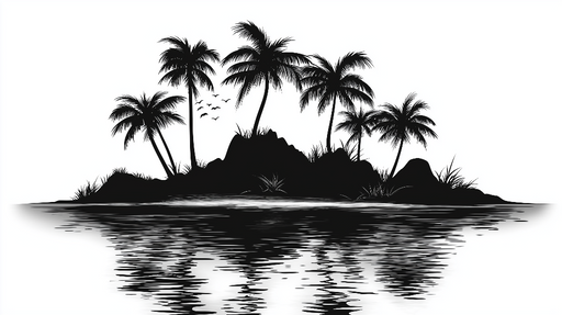 WonderMuralThis mural wallpaper features an elegant silhouette of a tropical island, adorned with majestic palm trees that stand proudly above black rocks. Th...