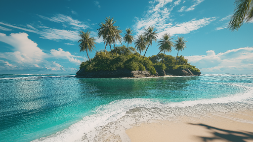 WonderMuralDiscover a true tropical paradise with this captivating image of a deserted island surrounded by the turquoise and clear waters of the ocean. A pal...
