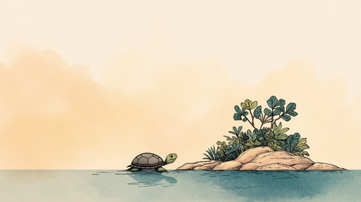 Mural Wallpaper turtle and island | Playful design of a turtle swimming towards a small green island