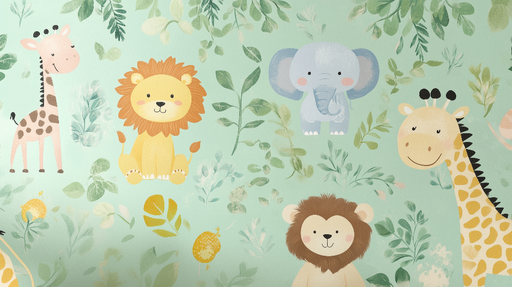 WonderMuralOur mural wallpaper features a charming jungle animals pattern, including a giraffe, a lion, and an elephant, all in a cartoon style. This playful ...