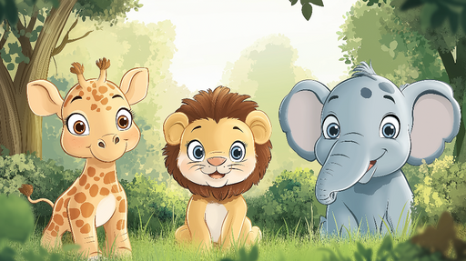View full detailsMural Wallpaper cute animals | Giraffe, lion, and elephant in the jungle
