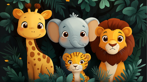 View full detailsMural Wallpaper animals | Adorable jungle animals in cartoon style
